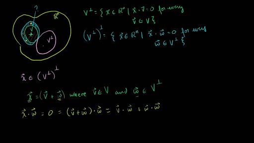 Orthogonal Complement Of The Orthogonal Complement Video Khan Academy