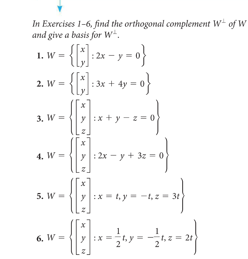 Solved In Exercises 1 6 Find The Orthogonal Complement W Of Chegg Com