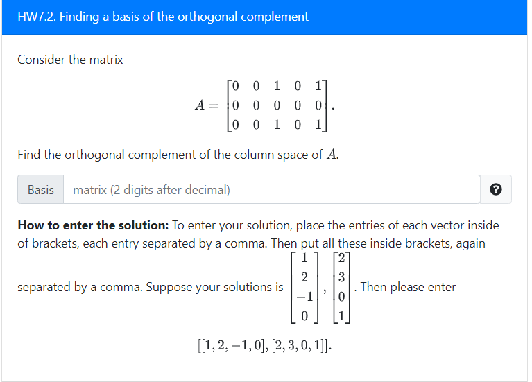 Solved Hw7 2 Finding A Basis Of The Orthogonal Complement Chegg Com