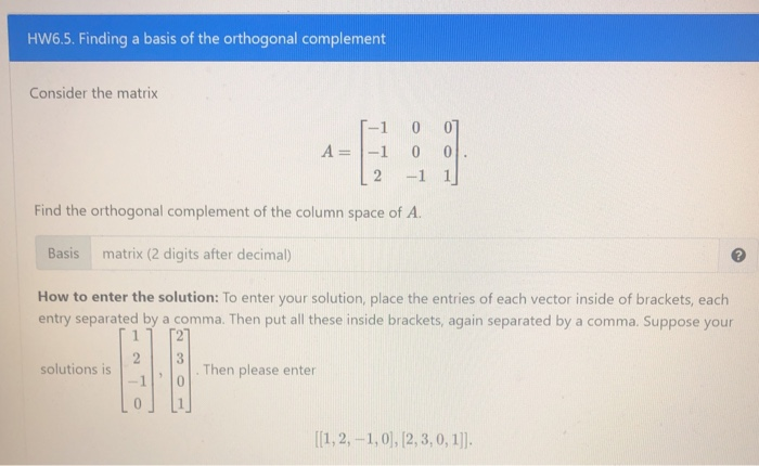 Solved Hw6 5 Finding A Basis Of The Orthogonal Complement Chegg Com